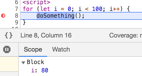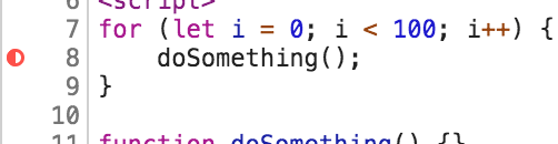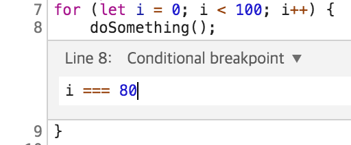 좀 더 나은 방법으로는 코드에 debugger 키워드를 활용하여 원하는 조건과 함께 작성하는 것이다. 다음과 같이 사용해 볼 수 있다.
