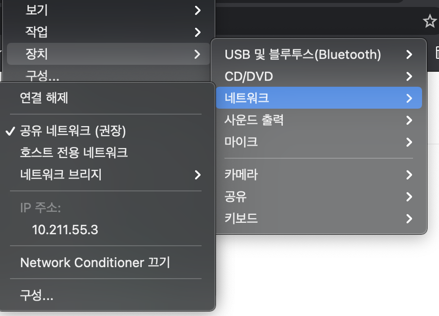 3. Parallels 에서 구동되는 OS 의 hosts 파일을 열고 10.211.55.2 에 도메인 설정