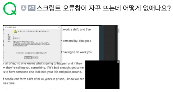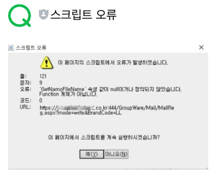 위 오류는 인터넷 익스플로러를 사용하는 환경에서 자주 발생한다.